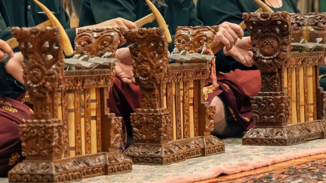 Balinese gamelan angklung is an ancient tradition utilizing a unique four-tone scale on an orchestra of bronze xylophones, cymbals, and gongs. The gamelan angklung ensemble is renowned for its enchanting and delicate sound and the depth and variety of its repertoire.